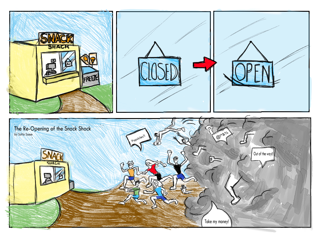 The Re-Opening of the Snack Shack Posted bysasseOctober 20, 2021October 21, 2021Posted inPersonalitiesTags:charge, comic, humor Art by Sofia Sasse Share this: Share on X (Opens in new window) X Share on Facebook (Opens in new window) Facebook Like Loading... Related