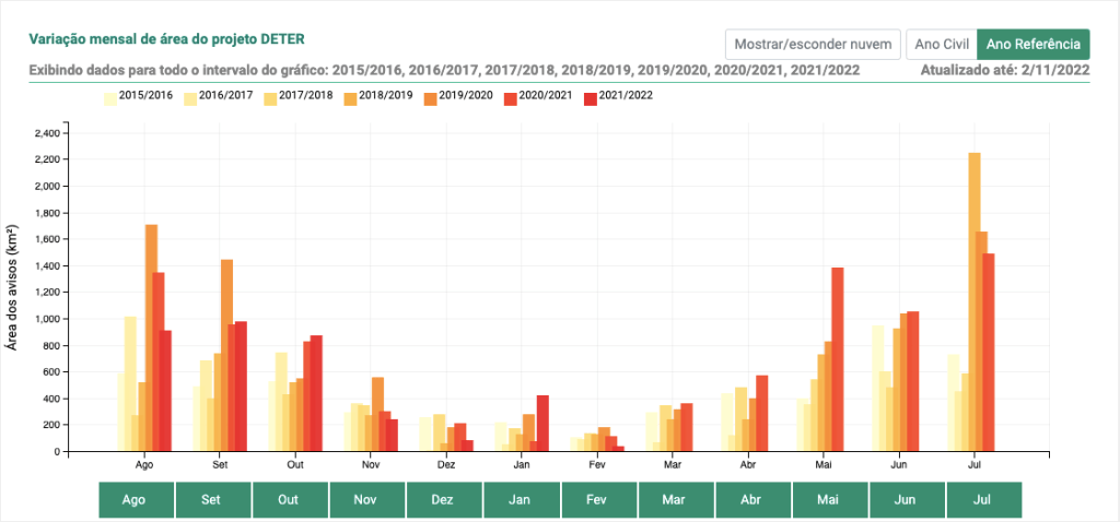 In the same article, the words of Claudio Angelo, communications coordinator for the Climate Observatory, are quoted in relation to the situation. He says, “If we are seeing such high deforestation in a month that is one of the rainiest and that, historically, has one of the lowest monthly averages of deforestation, because it rains all month, this is a very worrying sign”. In the same article, the words of Claudio Angelo, communications coordinator for the Climate Observatory, are quoted in relation to the situation. He says, “If we are seeing such high deforestation in a month that is one of the rainiest and that, historically, has one of the lowest monthly averages of deforestation, because it rains all month, this is a very worrying sign”.