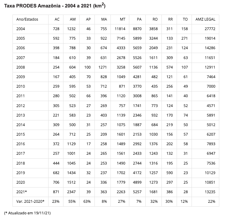 Monitoring of clear-cut deforestation by PRODES (2004 – 2021):