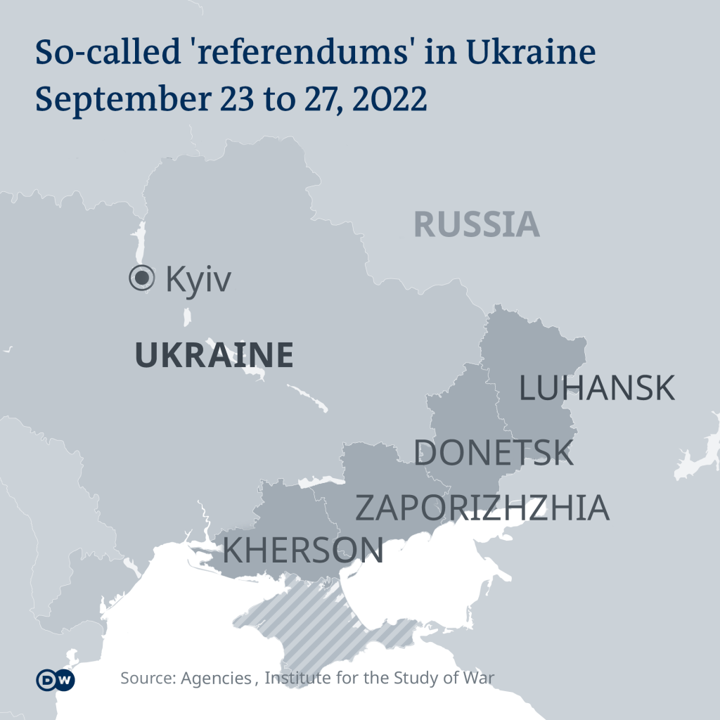 These policies were condemned, without success, by the UN. US President Joe Biden called the referendums “shams” and asked that the international community repute the threat to Ukrainian sovereignty.