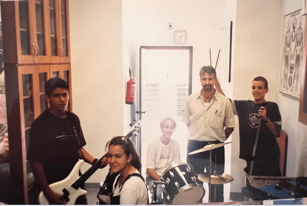 Mr. Kuczynski is grateful for how the school gives him so many opportunities to play music and be involved in the arts. When he had just entered the school, the currency, real, had just been established, therefore for someone moving into Brasil, everything was quite expensive. To be able to go to school to band practices, Mr. Kuczynski had to buy a car and the one he found in his budget was a yellow car, that he didn’t like that much. His students of the time would make fun of him for the color of his car, calling him a Taxi driver and asking him for rides, the class liked the car so much that they asked him if their senior picture could be taken with the bright yellow car on the background, it was taken down to the field and the picture was taken. After many years, this story has evolved into a rumor where people believe that his senior students “stole” his car and drove it down to the field as their senior prank.