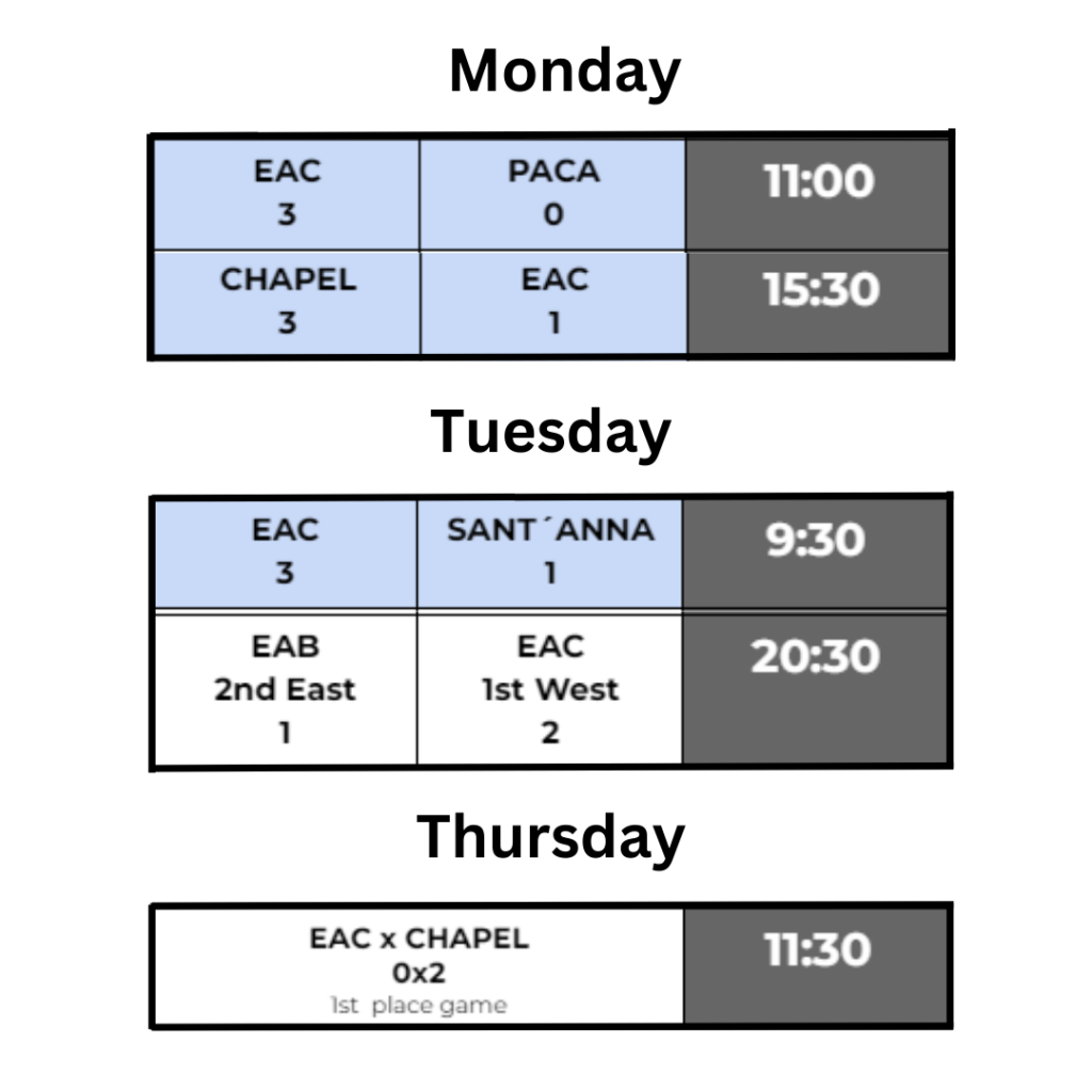 This season the boy’s futsal had an impressive run. The team arrived on Sunday and started the tournament with a quick practice to get their heads focused on the game. On the first day, Monday the 8th, the boys played their first game against PACA, having an impressive win 3 to nothing. Unfortunately losing their winning streak, the boys lost their second game of the day against Chapel 3-1. Because of their lost game on the first day, their second day needed to be stellar, and fantastically in their game against Sant´Anna, they won scoring 3 goals and only taking 1. Because of this win the boys qualified for the semi-finals later on the same day. The semis were played against the EAB Bulls, where our boys won 2 to 1 being qualified for the finals on the following day. The semi was one of the most exciting games of the season, with the support of various other schools of the bleachers. After their great efforts during the game, the boys were rewarded with a pizza night. To conclude their season the boys played their final! Their competition was Chapel, a school they had unfortunately lost against on their first day. Unfortunately, they lost against them again, but this time 2-0. Their position in the league was second place, the first runners-up. Due to this placement, they can go to Belo Horizonte to play the final four, where they have to opportunity to win against Chapel and bring home the first-place trophy.