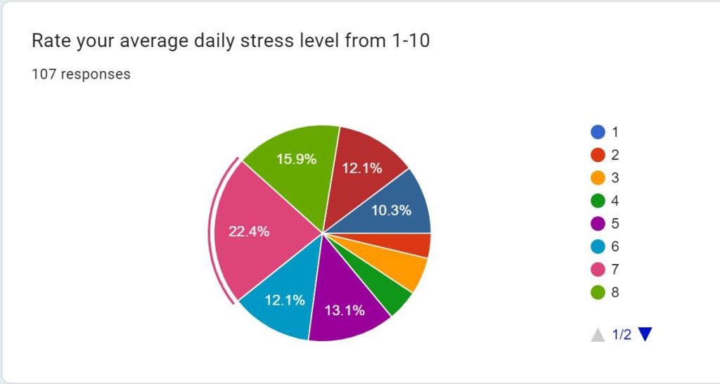 We asked the EAC upper school student body to answer a couple questions about their daily stress, this is what they had to say: In EAC, students in upper school (6th-12th) tend to rate their daily stress level at a 7 (1-10). The main area of stress coming from school work load. Though school work may be intimidating, when you do nothing about it and simply procrastinate, your situation may worsen. This point was emphasized when Marta Bidoli said “When people are stressed in general, we tend to procrastinate more, and that usually increases the stress. Procrastination is not about time management, it’s usually about the feeling you have when you start doing the work.” In order to combat this, 33 upper school students say they listen to music, while 22 others claim that sleeping is what allows them to decompress. Other minority groups mentioned playing video games, participating in sports, drawing, or going for walks. It is important to mention that in EAC, we are constantly supported within the classroom. “A good thing about our school is that councilors are in the classrooms with students every week.” Marta said, she looks for specific traits every week in students in attempt to identify which ones may need help opening up about their stress and in and out of school issues, Marta provided multiple alarming factors including: “When a student is constantly working on something else during the class, and when you walk around, they’re doing something else in math class that isn’t math, or something else in advisory that isn’t advisory.” Marta’s tips were to take your problems one at a time, and take time with your decision making when dealing with stress, lastly, make sure to know that there are always people willing to talk to you about your issues, ” you don’t really get any bigger award or prize for going through stress on your own.” Said Marta.