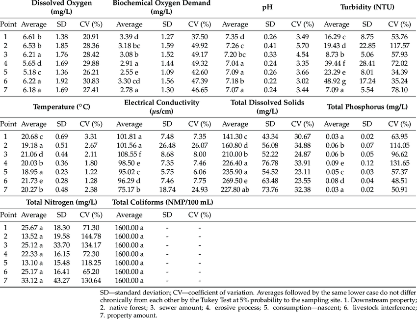 Longo et al. reported that, in the extreme western region of Santa Catarina, 64.1% of the water samples used for human consumption were contaminated with total coliforms, which can be inferred from the land use and occupation, thereby aggravating the water quality after precipitation (rain). Coliforms are groups of bacteria that are found in soils, surface water, and the intestines of animals/humans. Hence, if the majority of water samples found were contaminated with coliforms, this highlights the necessity of taking preventive measures to properly purify and treat water, as this could lead to further waterborne diseases in the population that consumes water from the sampling location.